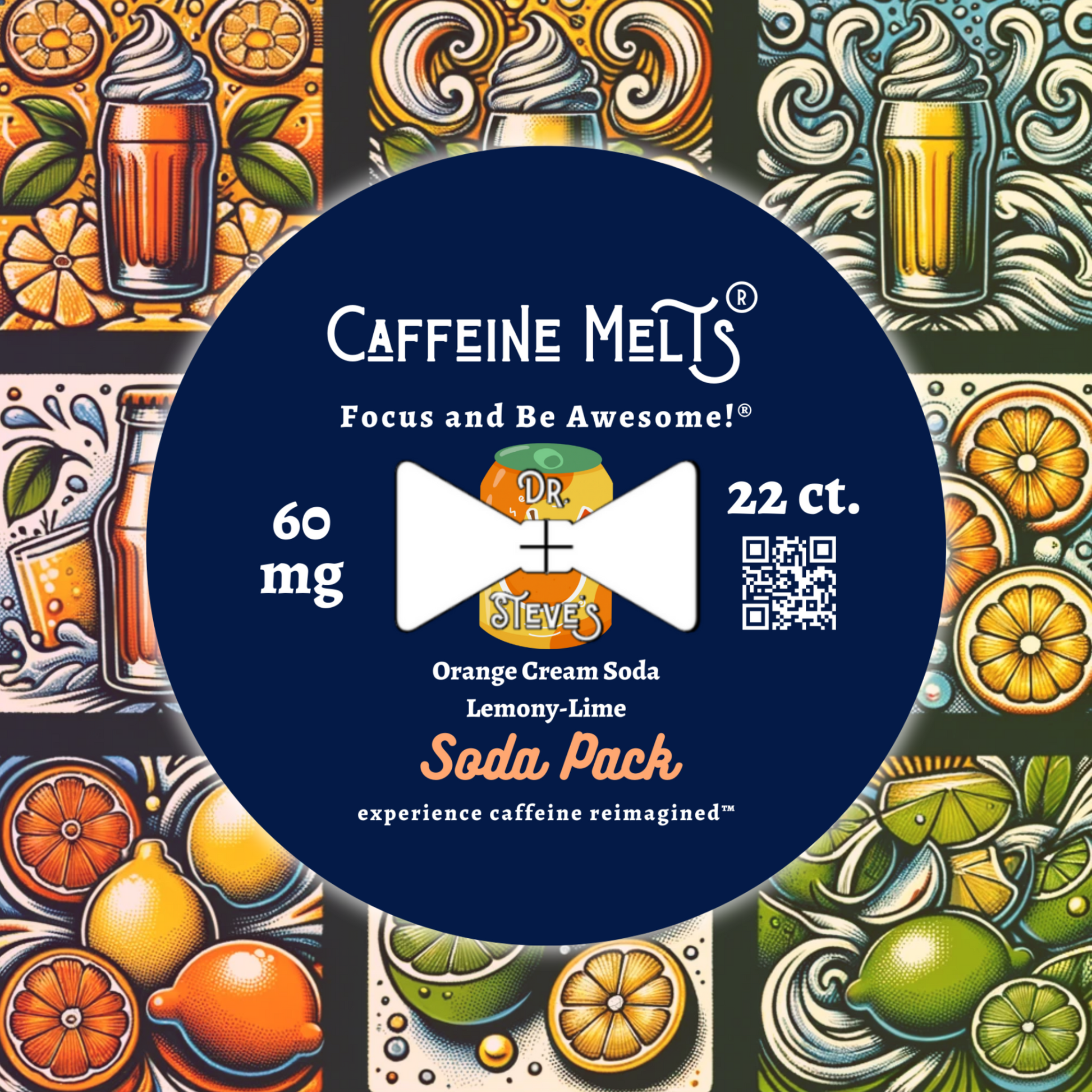 Enjoy the sweet citrus flavors of Soda Pack, a duo of Orange Cream Soda and Lemony-Lime! Enjoy notes of classic orange soda from Orange or tangy lime flavor from Lemony-Lime - all as you let them dissolve quickly under your tongue with reduced crashing or jitters afterwards. With this combo in tow, you'll be set to smile after every Melt! |
